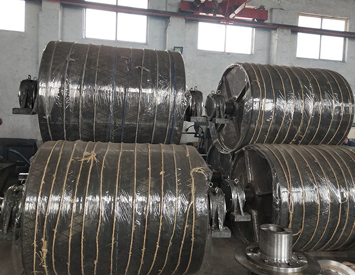 II型傳動(dòng)滾筒從制作材料上來(lái)分有鋼板卷制焊接、鑄鋼及鑄鐵3種。從結(jié)構(gòu)型式上來(lái)分有裝配輻板式、輻條式、整體輻板式3種。另外,滾筒表面也有光面、包膠、鑄膠等型式;其中,以鋼板焊接裝配輻板式鑄膠滾筒應(yīng)用廣泛。